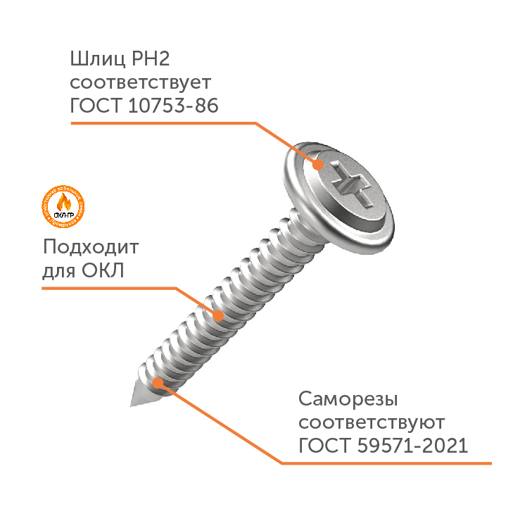 Саморезы в двух исполнениях, классические и со сверлом, которые позволяют вести монтаж без предварительного засверливания.