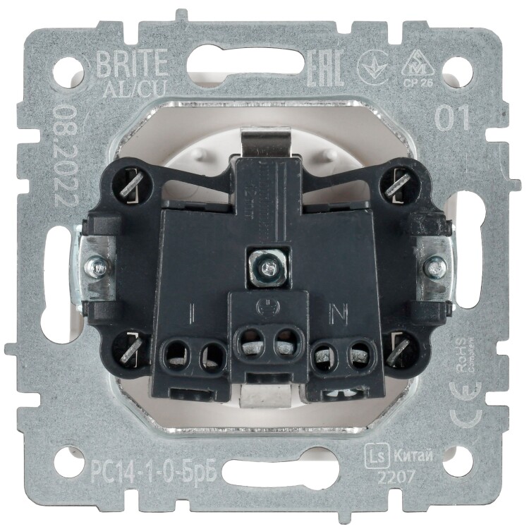 IEK BRITE Роз. с з/к/ш 16А РС14-1-0-БрБ бел.