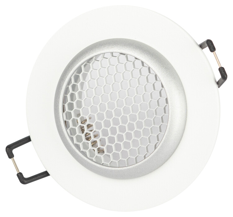 Встраиваемый потолочный светильник ЭРА KL109 WH/SL - это стильный и функциональный источник света, предназначенный для использования с лампами типа GU5.3 с максимальной мощностью до 12 Вт. Он имеет матовый корпус в сочетании белого и серебристого цветов. Благодаря своей конструкции, точечный светильник может быть встроен не только в потолок, но также в стену или кухонный гарнитур, что позволяет создавать уникальные световые акценты и решать различные дизайнерские задачи. Он подходит для установки на различных видах поверхностей, таких как гипсокартон или натяжные потолки, что делает его универсальным решением для освещения любого помещения. Корпус прибора изготовлен из качественного и прочного алюминия, что гарантирует долгий срок службы и устойчивость к коррозии. Диаметр данной модели составляет 8 см, диаметр врезного отверстия - 6,5 см. ВНИМАНИЕ, лампочка в комплект не входит.