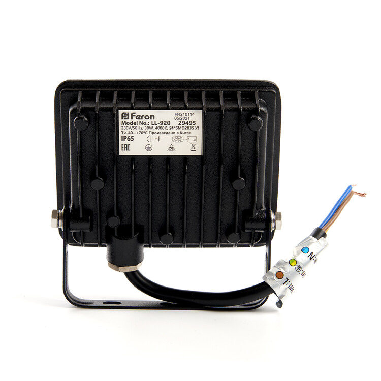 Прожектор светодиодный многоматричный с монтажным креплением на кронштейн, (ДО) FERON LL-920 , 30W, 4000К (белый), 230V/50Гц, 2400Lm, IP65, угол рассеивания 120°,*SMD2835, раб.t -40°C - +40°C, цвет чёрный, корпус алюминий литой под давлением + стекло, 103*24*100 мм