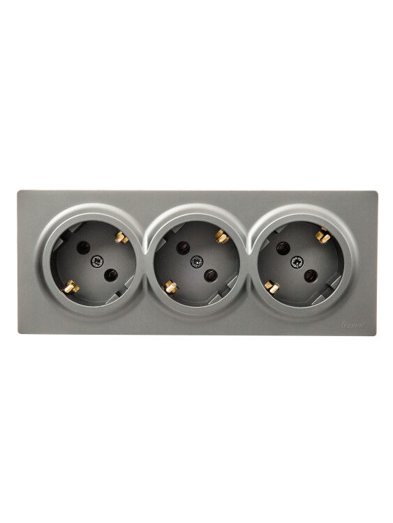 LETO Розетка тройная с/з закрытый корпус ПБТ платина (7шт/84шт)