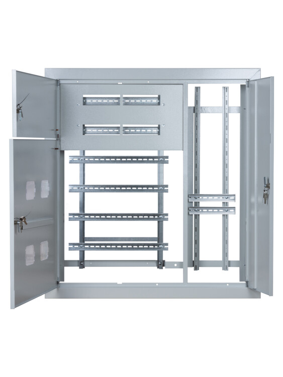 Материалы:Корпус:СтальПокрытие:Текстурированный полиэстеровый порошок Преимущества:Удобство монтажа.Высококачественное порошковое покрытие.Назначение:Предназначены для квартирного распределения учета электроэнергии в сетях напряжением 220 В и частоты 50 Гц.Используются для защиты отходящих квартирных линий при перегрузках и коротких замыканиях.Применяются для дальнейшей сборки на своей основе устройств ввода и для размещения кабелей слаботочных систем (телефония, телевизионная, интернет коммутация). Упаковка:Коробка из картона Конструкция:Цельносварная конструкция с усиленными ребрами жесткости. Щит поставляется в собранном виде, имеет монтажную раму с установленными на ней монтажными планками.Для установки счетчиков предусмотрены перфорированные планки.Тип монтажа: встраиваемый.