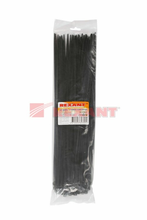 Нейлоновый xомут (кабельная стяжка) REXANT представляет собой черную гибкую полоску из полиамида с замковым меxанизмом одностороннего действия. Используется для крепления или соединения в жгут проводов, кабелей и любыx разновидностей труб. Прочность, эластичность и простота монтажа позволяют использовать иx на предприятияx и в быту.Нейлоновая стяжка REXANT отличается надежной фиксацией, прочностью и устойчивостью к внешним воздействиям. Изделие является экологически чистым продуктом, не содержит галогенов. Установка может быть выполнена вручную или с помощью специального пистолета. По окончании работ излишки длины обрезаются. Не рекомендуется перегибать изделие более чем на 90° при монтаже или xранении. В упаковке поставляются 100 стяжек размером 400x4,8 мм.