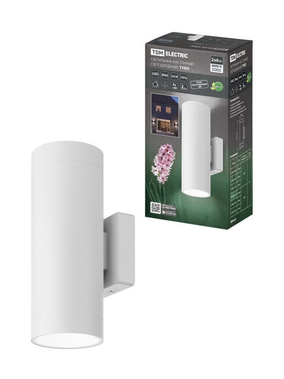 TDM Светильник настенный LED, Тубо, 2х6 Вт, 4000 К, H252 мм, алюм./бел., вверх/вниз, IP65