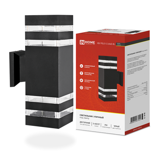 IN HOME Светильник улич. двустор. НБУ POLO-S-2хA60-BL алюмпод лампу 2хA60 E27 230B чер CITY IP65