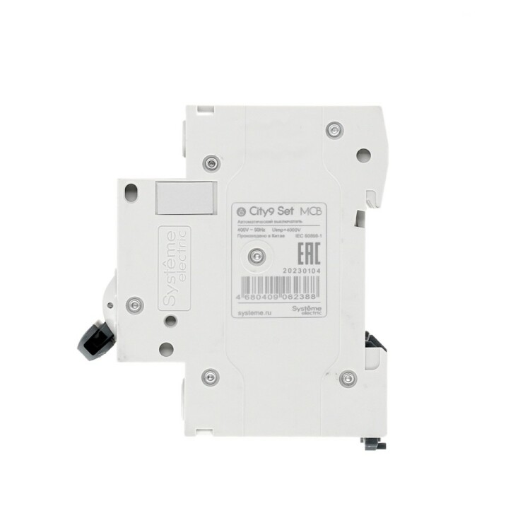 Автоматический выключатель серии City9 Set Systeme Electric, 3-полюсный, номинальный ток 10 А, характеристика С, Icn = 4.5 кА. Применяется в электрических сетях напряжением 400 В. Предназначен для защиты от перегрузок и токов короткого замыкания. Оснащен механизмом «мгновенной коммутации». Ударопрочный корпус из специального пластика с 6 металлическими заклепками. Безопасные клеммы исключают попадание кабелей в заклеммное пространство (ранее Schneider Electric EZ9F34310).
