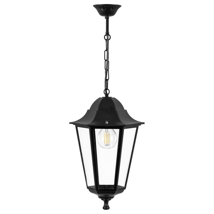 Светильник садово-парковый, серии «Классика», (НСУ) FERON 6105/PL6105 60W, E27, 230V, IP44, цвет черный, 6-и гранник, на цепочке, 170*170*810мм