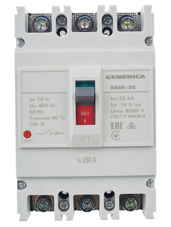 Автоматические выключатели В А66 GENERICA предназначены для проведения тока в нормальном режиме и отключения тока при коротких замыканиях, перегрузке, а также для оперативных включений и отключений участков электрических цепей.
