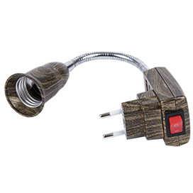 Ecola base Переходник вилка-патрон E27 гибкий 150мм c выключателем Черненая бронза