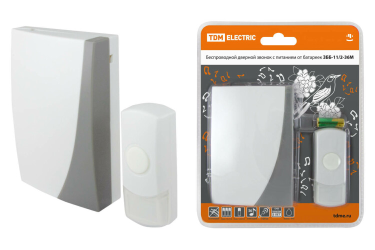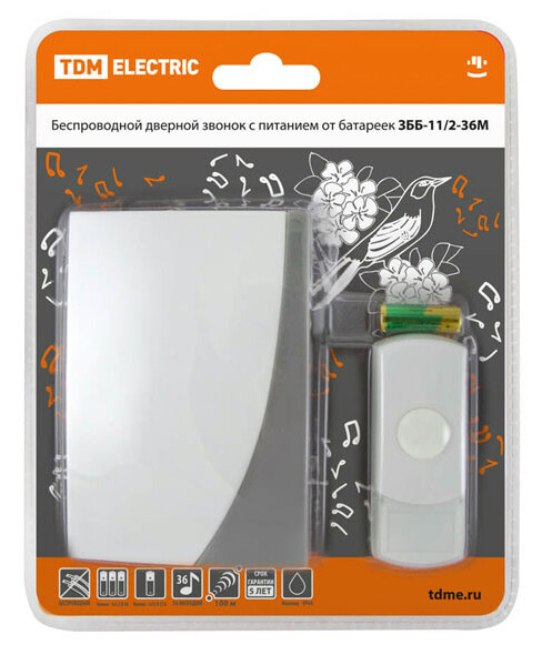 Применение:Используются в качестве дверных звонков или устройств внутреннего вызова. Преимущества:Бюджетное предложение на электротехническом рынке.Дальность работы беспроводных звонков 100-300 метров (на открытом пространстве).В ряде моделей имеется возможность разместить на кнопке номер квартиры и/или фамилию хозяина.В ряде моделей пользователь имеет возможность изменения кода звонка при порче/утере старой кнопки или для подключения дополнительной кнопки.В ассортименте имеются отдельно кнопки для проводных и беспроводных звонков, что позволит произвести замену при порче старой кнопки.Ряд моделей имеет кнопки со степенью защиты IP44, которые можно устанавливать на улице.Имеются исполнения с 2-мя кнопками (для разных выходов из дома) и с 2-мя звонками (для разных этажей или зданий: дом, гараж).Звонки упакованы в яркую блистерную упаковку, оформленную в корпоративных цветах TDM ELECTRIC, на каждом блистере есть информационные пиктограммы с характеристиками звонков.0: Применение:Используются в качестве дверных звонков или устройств внутреннего вызова. Преимущества:Бюджетное предложение на электротехническом рынке.Дальность работы беспроводных звонков 100-300 метров (на открытом пространстве).В ряде моделей имеется возможность разместить на кнопке номер квартиры и/или фамилию хозяина.В ряде моделей пользователь имеет возможность изменения кода звонка при порче/утере старой кнопки или для подключения дополнительной кнопки.В ассортименте имеются отдельно кнопки для проводных и беспроводных звонков, что позволит произвести замену при порче старой кнопки.Ряд моделей имеет кнопки со степенью защиты IP44, которые можно устанавливать на улице.Имеются исполнения с 2-мя кнопками (для разных выходов из дома) и с 2-мя звонками (для разных этажей или зданий: дом, гараж).Звонки упакованы в яркую блистерную упаковку, оформленную в корпоративных цветах TDM ELECTRIC, на каждом блистере есть информационные пиктограммы с характеристиками звонков.