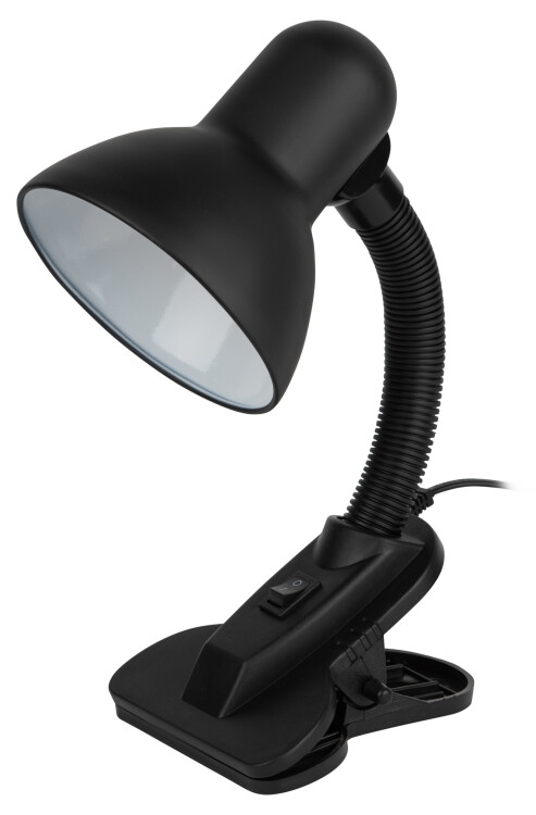Металлический плафон. Направление света регулируется гибкой стойкой, которая обеспечивает наклон и поворот плафона в любом направлении. Выключатель на прищепке. Классический дизайн. Предназначен для использования с лампой накаливания или компактной люминесцентной лампой (КЛЛ): максимальная мощность 40W, цоколь E27, 220V 50HZ, лампа в комплект не входит.
