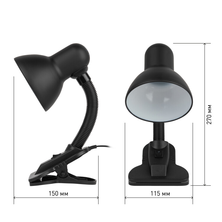 ЭРА Настольный светильник N-102-E27-40W-BK на прищепке черный матовый