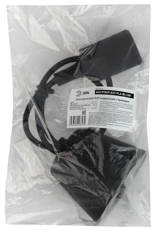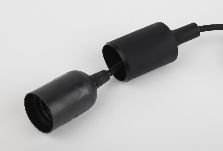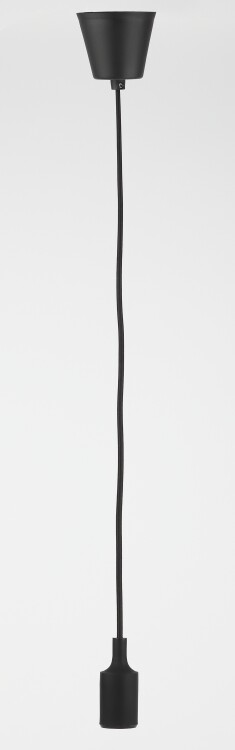 патрон с подвесом, длина провода 80 см, изготавливается из термостойкого пластика, материал химически устойчивый к агрессивным средам, обладает высокой прочностью и теплостойкостью; не обладает способностью выдерживать высокие температуры нагрева, поэтому его чаще всего используют для ламп накаливания мощностью не более 60 Вт. Есть регулировка длины шнура.