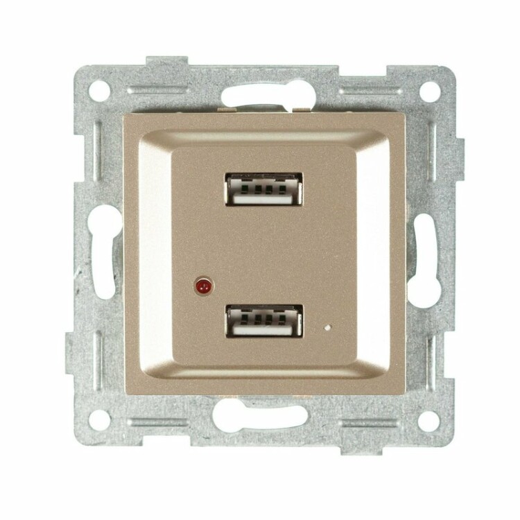 GUSI Ugra МЕХАНИЗМ розетки USB, двойной, скрытая установка. Цвет : шампань.