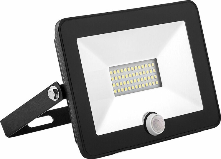 Прожектор светодиодный многоматричный с монтажным креплением на кронштейн, с инфракрасным датчиком движения (ДО) SAFFIT SFL80-20, 20W, 6400К (дневной), 230V/50Гц, 1800Lm, IP44, угол рассеивания 120°,*SMD2835, раб.t -40°C - +45°C, цвет черный, корпус алюминий литой под давлением + стекло, 110*160*50 мм