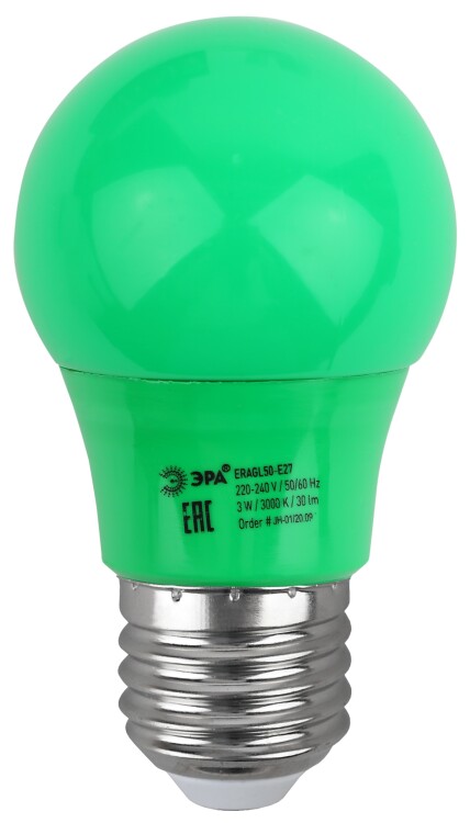 Декоративная светодиодная лампа ЭРА "Белт-лайт" с цоколем Е27 и колбой груша (А50) зелёного цвета. Мощность - 3 Вт. Идеально подходит для использования в гирлянде-конструкторе ЭРА "Белт-лайт", дающей возможность самостоятельного дизайна и монтажа праздничной иллюминации. В составе гирлянды-конструктора позволяет создавать уникальное праздничное освещение по индивидуальным параметрам и для конкретных задач. Вы сами выбираете длину подсветки, цвет ламп и расстояние между источниками света. Это идеальное решение для оформления витрин, общественных пространств. Другие элементы гирлянды-конструктора: патрон Б0049176, кабель Б0049175, набор для подключения (шнур питания с вилкой + коннектор) Б0049180, коннектор Б0049179, заглушка Б0049181, заглушка с крюком Б0049182. В ассортименте ЭРА LED-лампы "Белт-лайт" E27 разных цветов, в том числе прозрачные и матовые белые. Колбы изготовлены из лёгкого ударопрочного пластика, такие лампы удобно транспортировать, использовать и хранить. Цоколь - из алюминия. Лампы ЭРА "Белт-лайт" универсальны: подходят к любому светотехническому прибору с патроном для Е27. Создают необычное цветное свечение определённого оттенка. Помогают воплощать в жизнь смелые дизайнерские идеи.