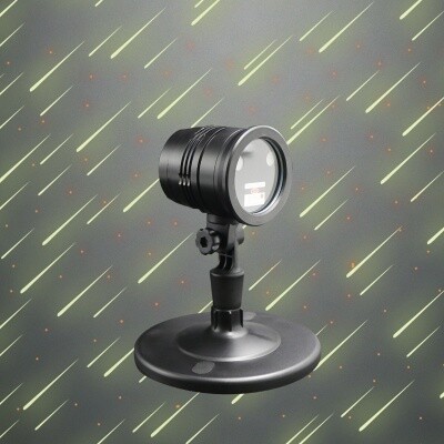 Лазерный проектор «Метеоритный дождь» с пультом дистанционного управления защищен от воздействия влаги и пыли по стандарту IP44 — подходит для использования как дома, так и на улице. Подставка с отверстиями для крепежа устанавливается на любую ровную поверхность, специальный колышек предназначен для размещения в грунте. Светодинамический эффект достигается благодаря лазерным лучам красного и зеленого цвета. Режимы, скорость регулируются, позволяя настраивать проекции по собственному вкусу.
