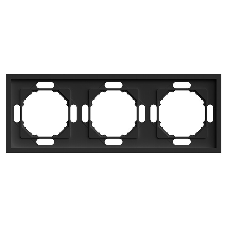 Рамка STEKKER PFR00-5003-05 на 3 поста. Материал: поликарбонат, цвет черный уголь, soft touch, размер 224*82*9,4мм. Рамки серии Эмили выполнены в минималистичном дизайне и идеально дополняют механизмы. За счет отсутствия перемычек в рамках на 2 и более поста достигается почти монолитный блок выключателей или розеток. Рамки Эмили имеют простой и удобный способ крепления к механизмам.