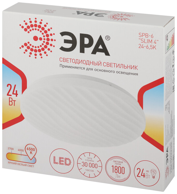 Светодиодный потолочный светильник SPB-6 "Slim 4" мощностью 24 Вт от компании ЭРА идеальное решение для любого интерьера. Благодаря неповторимому дизайну и небольшим габаритам данная люстра гармонично впишется как в большое, так и маленькое пространство.Одним из главных преимуществ данного LED светильника является его свечение. Холодно-белый оттенок светодиода (6000 К) и пластиковая поверхность рассеивателя успокаивают глаза и защищают от воздействия прямого света.
