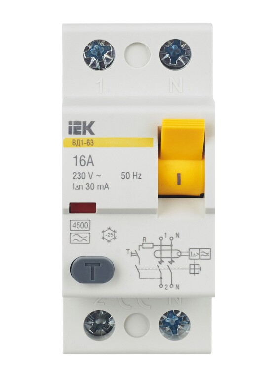 Дифференциальный выключатель ВД 1-63 тип А выпускается в 2-х и 4-х полюсном исполнении на номинальные токи 16А, 25А, 32А, 40А, 50А, 63А и номинальные отключающие дифференциальные токи 10мА, 30мА, 100мА.