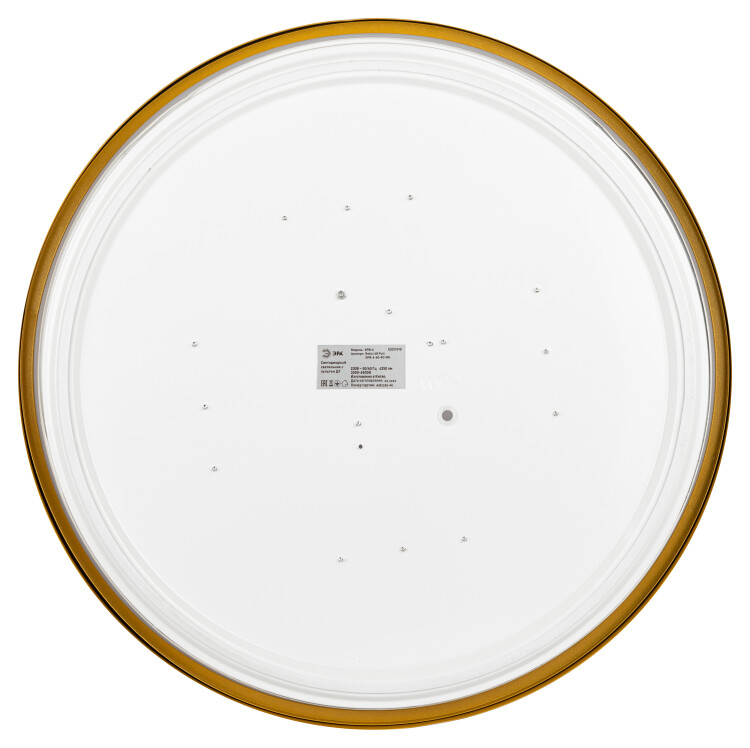 Светильник потолочный светодиодный ЭРА SPB-6 Relict c пультом дистанционного управления. Цвет корпуса - золотой (арт. Б0059498). Аналогичные модели в других цветах: чёрный - арт. Б0059497, белый - арт. Б0059496. Relict с пультом ДУ - новый потолочный светильник популярной линейки ЭРА SPB-6. С помощью пульта дистанционного управления можно настраивать цветовую температуру в диапазоне 3000-6500К. Совместим с выключателями с подсветкой. Внешнее кольцо выполнено из метала с порошковым окрашиванием. Светильник на потолок не имеет рамок, обрамляющих рассеиватель с лицевой стороны, что придаёт ему эстетичный минималистичный внешний вид. Благодаря простому конструктиву удалось добиться выгодной цены, при этом ЭРА SPB-6 Relict по своей надёжности и внешнему виду не уступает более дорогим вариантам на рынке.