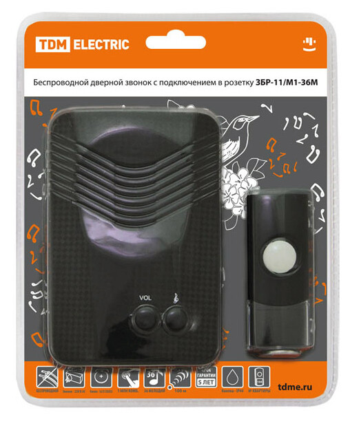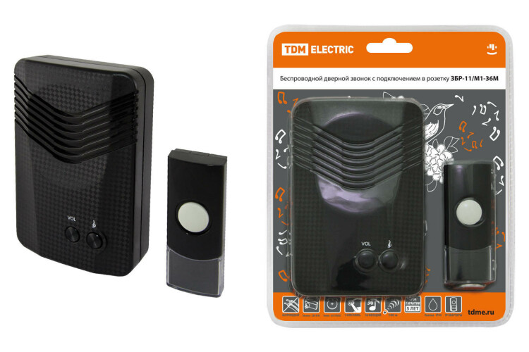 Применение:Используются в качестве дверных звонков или устройств внутреннего вызова. Преимущества:Бюджетное предложение на электротехническом рынке.Дальность работы беспроводных звонков 100-300 метров (на открытом пространстве).В ряде моделей имеется возможность разместить на кнопке номер квартиры и/или фамилию хозяина.В ряде моделей пользователь имеет возможность изменения кода звонка при порче/утере старой кнопки или для подключения дополнительной кнопки.В ассортименте имеются отдельно кнопки для проводных и беспроводных звонков, что позволит произвести замену при порче старой кнопки.Ряд моделей имеет кнопки со степенью защиты IP44, которые можно устанавливать на улице.Имеются исполнения с 2-мя кнопками (для разных выходов из дома) и с 2-мя звонками (для разных этажей или зданий: дом, гараж).Звонки упакованы в яркую блистерную упаковку, оформленную в корпоративных цветах TDM ELECTRIC, на каждом блистере есть информационные пиктограммы с характеристиками звонков.0: Применение:Используются в качестве дверных звонков или устройств внутреннего вызова. Преимущества:Бюджетное предложение на электротехническом рынке.Дальность работы беспроводных звонков 100-300 метров (на открытом пространстве).В ряде моделей имеется возможность разместить на кнопке номер квартиры и/или фамилию хозяина.В ряде моделей пользователь имеет возможность изменения кода звонка при порче/утере старой кнопки или для подключения дополнительной кнопки.В ассортименте имеются отдельно кнопки для проводных и беспроводных звонков, что позволит произвести замену при порче старой кнопки.Ряд моделей имеет кнопки со степенью защиты IP44, которые можно устанавливать на улице.Имеются исполнения с 2-мя кнопками (для разных выходов из дома) и с 2-мя звонками (для разных этажей или зданий: дом, гараж).Звонки упакованы в яркую блистерную упаковку, оформленную в корпоративных цветах TDM ELECTRIC, на каждом блистере есть информационные пиктограммы с характеристиками звонков.