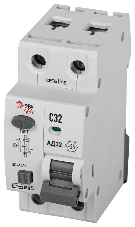 ЭРА АВДТ 4,5кА PRO D32E2C32S100 АД-32 электронное 1P+N C32 100мА тип S