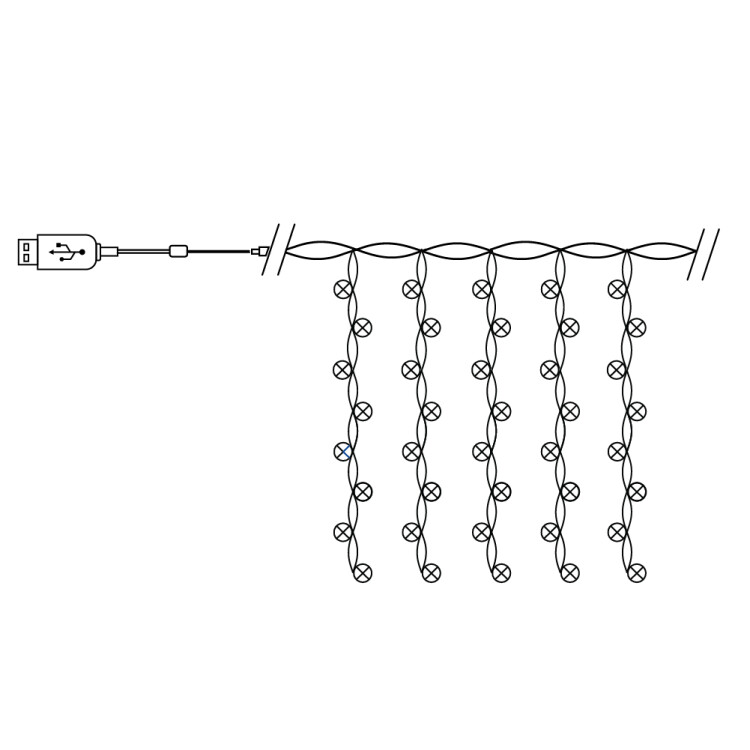 Гирлянда дождь FERON CL590, 240LED, 2700К (теплый белый), настраивается контроллером, 2*2м+2м расстояние между светодиодами 10см, IP20, 2,5W, USB DC 5V, пульт в комплекте,