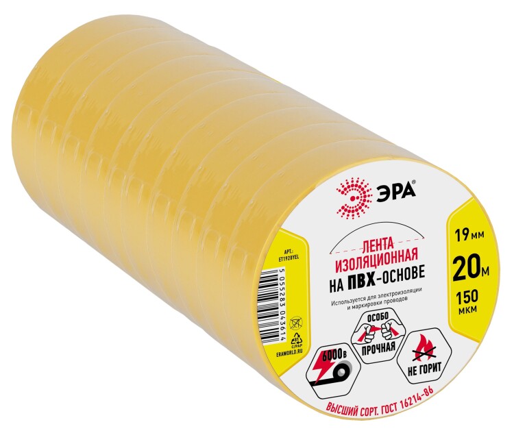 ЭРА Изолента ET1920YEL ПВХ 19мм х 20м желтая