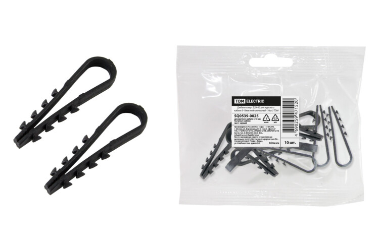 TDM Дюбель-хомут ДХК-10 для круглого кабеля 5-10мм нейлон черный (10шт).