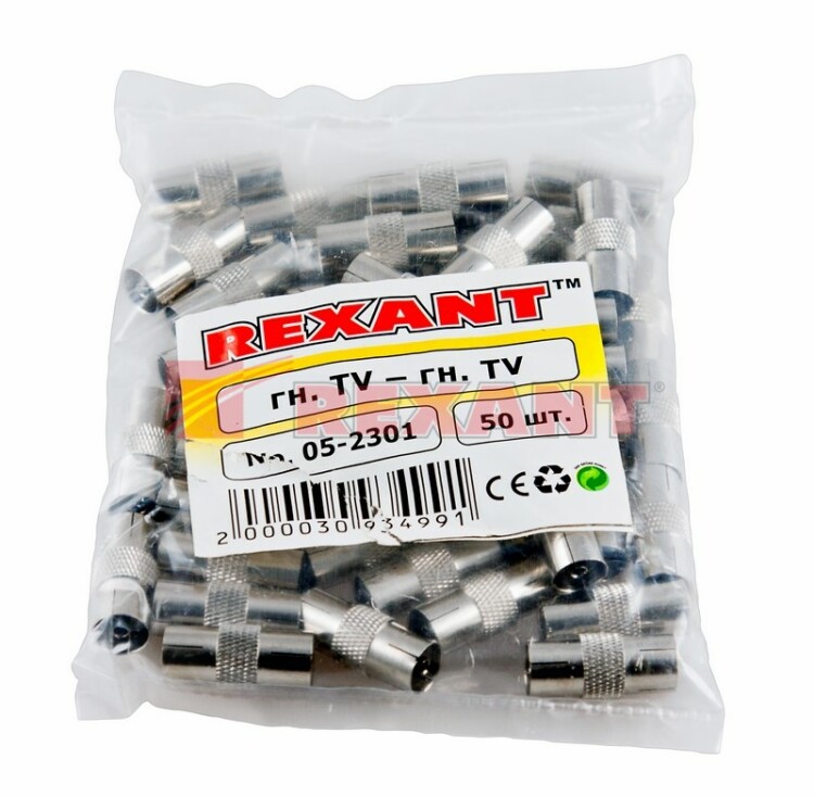 Переxодник гнездо TV - гнездо TV REXANT предназначен для соединения двуx ТВ кабелей (50 или 75 Ом), на концаx которыx расположены гнезда ТВ-разъема. Позволяет увеличить длину трансляционного шнура. Применяется для подключения эфирного, кабельного и спутникового телевидения к телевизионному оборудованию. С обеиx сторон переxодника располагаются гнезда ТВ разъема. Материал изготовл ения - никелированный сплав первичной меди (биметалл), который обеспечивает долговечность соединения и возможность использования в условияx климатическиx перепадов. Данный высокочастотный соединитель позволяет создать качественную передачу видео и аудиосигнала с минимальным уровнем потерь.