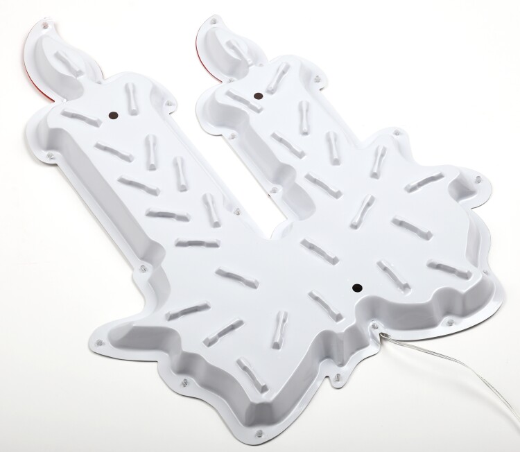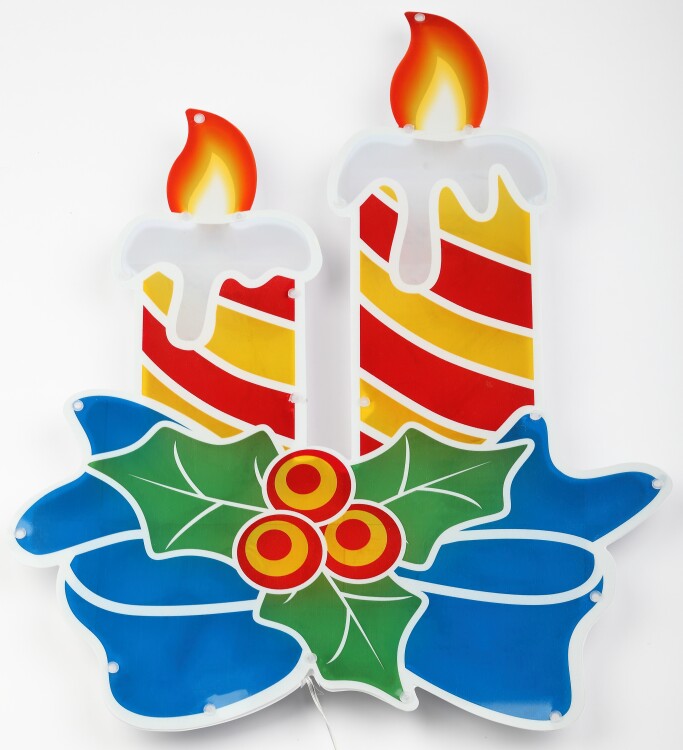 Новогодняя настенная светодиодная фигура ЭРА "Свечки" (арт. Б0041939) для праздничного декора внутри и снаружи помещений. Защищена от влаги и пыли (IP44), отличается морозостойкостью. Работает от стандартной электросети 220 В, прозрачный провод практически не заметен. Светится тёплым белым светом, который создаёт атмосферу уюта. Дизайн фигуры идеально подходит к зимним праздникам. Разноцветные свечки отлично смотрятся и в выключенном, и во включённом состоянии. Размеры: 40 х 4,5 х 50 см. В качестве источников света применены 20 ярких и экономичных светодиодов, которые не перегреваются даже при длительной работе без перерывов. Новогодняя LED-фигура - простой и быстрый способ создать праздничное настроение, украсить дом, офис, общественное пространство.