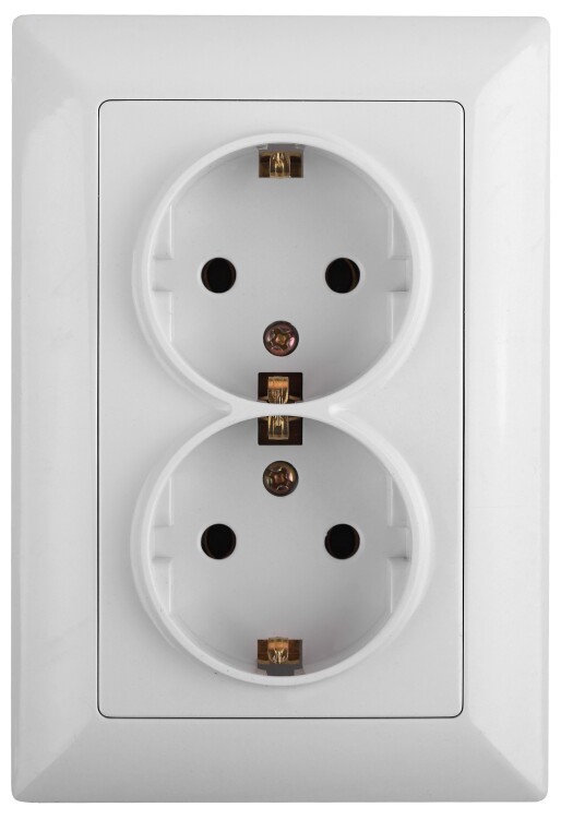 Розетка двойная 2-я серии Intro Solo скрытой установки цвет белый 4-205-01. Номинальные характеристики 16А 250В. Розетка выполнена из негорючего термопласта, укомплектована одноместной рамкой, оснащена винтовыми клеммами. Клеммы с двумя отверстиями позволяют соединять соседние розетки шлейфом. Установка в подрозетник производится как на монтажные лапки, так и на винты.