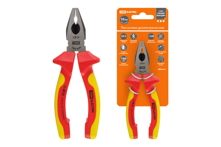 Материалы:Диэлектрический пластик VDEРезина TPRХром-ванадиевая сталь CR-V Преимущества:Надежная сталь, режущая кромка, закаленная токами высокой частоты.Антикоррозийное покрытие.Эргономичные рукоятки.Диэлектрические свойства изоляционного материала соответствуют стандарту VDE.Назначение:Для выполнения любых слесарных, электромонтажных и прочих работ, в том числе и под напряжением до 1000 В 0: Материалы:Диэлектрический пластик VDEРезина TPRХром-ванадиевая сталь CR-V