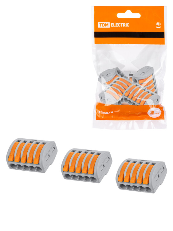 Применение:Для присоединения и ответвления до 5 одножильных проводников сечением от 0,1 мм до 2,5 мм и многожильных медных проводников сечением от 0,1 мм до 4 мм в электрических цепях переменного тока с частотой 50Гц напряжением до 380В. Материалы:Корпус - самозатухающий ПВХКонтактная группа - электротехническая стальПреимущества:Быстрый монтаж и демонтаж проводников без дополнительных инструментовСоздают надежное соединение медных многожильных и одножильных проводников от 0,1 до 2,5 мм2.Благодаря утопленному рычажку исключено случайное отключение при монтаже в тесном пространстве.Обеспечивают безопасность и порядок в распределительной коробке.Имеют тестовое отверстие для возможности измерения электрических параметров без разбора и нарушения изоляции соединения. Назначение:Монтаж проводников в распределительной коробке, подключение светильников и другого оборудования. 0:
