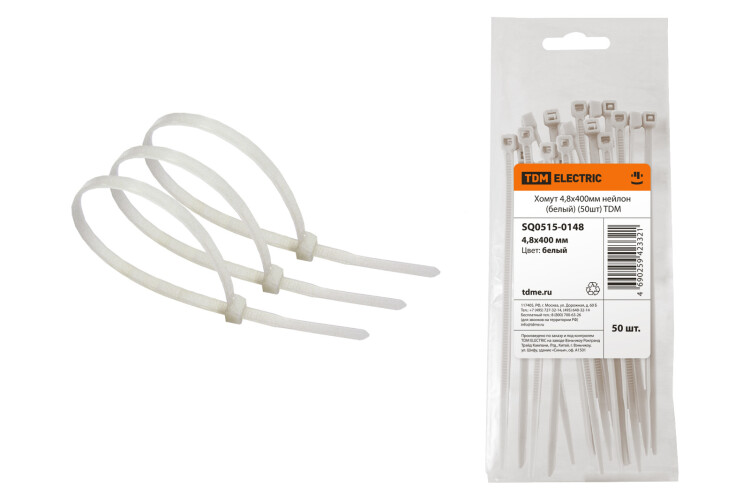 TDM Хомут 4,8х400мм нейлон (белый) (50шт)