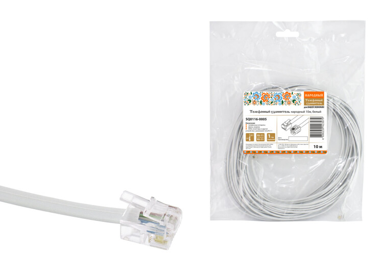 TDM Телефонный удлинитель народный 10м, белый.