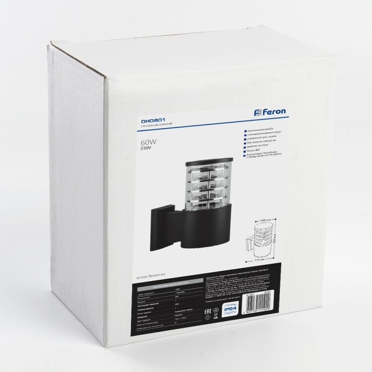 Светильник садово-парковый, серии «Сан-Франциско», (НБУ) FERON DH0801 60W, E27, 230V, IP54, цвет серый, цилиндр, на стену вверх, 175*108*220мм