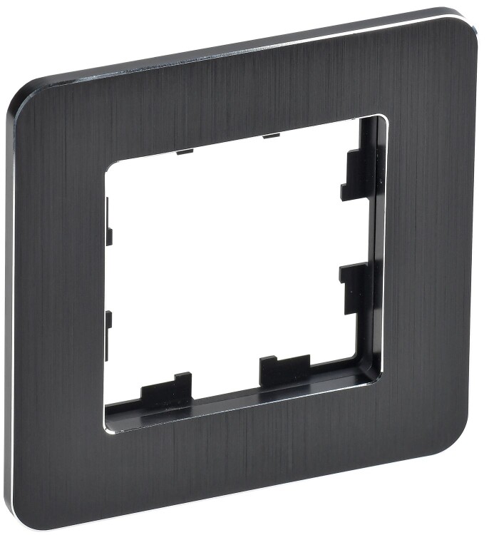 IEK BRITE DECOR Черный/алюм металл. скругл.угол Рамка 1-м РУ-1-1-Бр RE AL