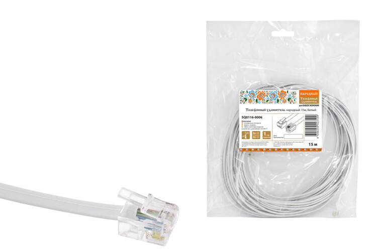 TDM Телефонный удлинитель народный 15м, белый.