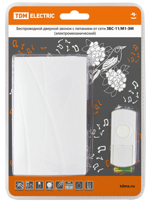Применение:Используются в качестве дверных звонков или устройств внутреннего вызова. Преимущества:Бюджетное предложение на электротехническом рынке.Дальность работы беспроводных звонков 100-300 метров (на открытом пространстве).В ряде моделей имеется возможность разместить на кнопке номер квартиры и/или фамилию хозяина.В ряде моделей пользователь имеет возможность изменения кода звонка при порче/утере старой кнопки или для подключения дополнительной кнопки.В ассортименте имеются отдельно кнопки для проводных и беспроводных звонков, что позволит произвести замену при порче старой кнопки.Ряд моделей имеет кнопки со степенью защиты IP44, которые можно устанавливать на улице.Имеются исполнения с 2-мя кнопками (для разных выходов из дома) и с 2-мя звонками (для разных этажей или зданий: дом, гараж).Звонки упакованы в яркую блистерную упаковку, оформленную в корпоративных цветах TDM ELECTRIC, на каждом блистере есть информационные пиктограммы с характеристиками звонков.0: Применение:Используются в качестве дверных звонков или устройств внутреннего вызова. Преимущества:Бюджетное предложение на электротехническом рынке.Дальность работы беспроводных звонков 100-300 метров (на открытом пространстве).В ряде моделей имеется возможность разместить на кнопке номер квартиры и/или фамилию хозяина.В ряде моделей пользователь имеет возможность изменения кода звонка при порче/утере старой кнопки или для подключения дополнительной кнопки.В ассортименте имеются отдельно кнопки для проводных и беспроводных звонков, что позволит произвести замену при порче старой кнопки.Ряд моделей имеет кнопки со степенью защиты IP44, которые можно устанавливать на улице.Имеются исполнения с 2-мя кнопками (для разных выходов из дома) и с 2-мя звонками (для разных этажей или зданий: дом, гараж).Звонки упакованы в яркую блистерную упаковку, оформленную в корпоративных цветах TDM ELECTRIC, на каждом блистере есть информационные пиктограммы с характеристиками звонков.
