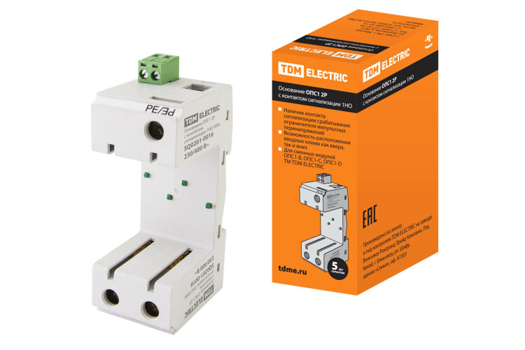 Применение:объекта до коммутационных и защитных аппаратов и счётчика. Материалы:Корпус и детали аппарата выполнены из пластика, не поддерживающего горение.Преимущества:Наличие контакта сигнализации срабатывания.Совместимость размеров позволяет установить аппарат в стандартный щиток с любыми аппаратами модульной серии.Любое рабочее положение в пространстве.Клеммные зажимы ограничителя промаркированы и подписаны (Сеть/Земля), что позволяет избежать ошибок при монтаже.Простота извлечения сменного модуля из основания ОПС-1 без съема с DIN-рейки. Назначение:предназначено для защиты внутренних распределительных цепей жилых и общественных зданий от грозовых и коммутационных импульсных перенапряжений.Основание ОПС1 с контактом сигнализации является держателем сменного модуля ОПС1 TDM.что не требует постоянной проверки оборудования на месте его установки и значительно облегчает контроль за коммутационным оборудованием здания. Упаковка:Основание ОПС1 2Р по 60 шт.Основание ОПС1 3Р по 40 шт.Основание ОПС1 4Р по 30 шт.