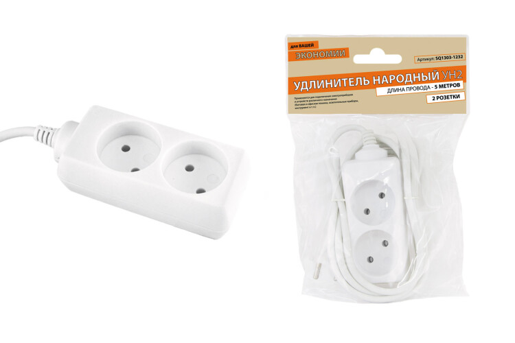 Удлинитель народный УН2 2 гнезда, 5метров, б/з, ШВВП 2х0,75 мм2 6А/250В