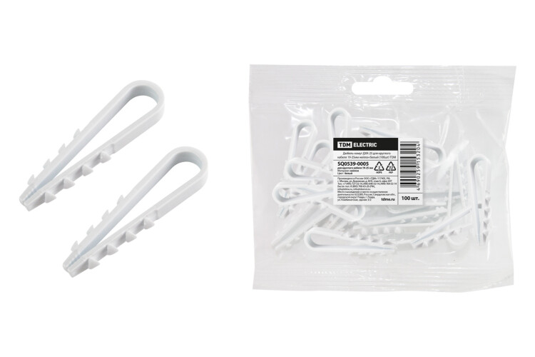 TDM Дюбель-хомут ДХК-25 для круглого кабеля 19-25мм нейлон белый (100шт)