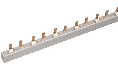 Применяются для удобного и безопасного соединения групп: ВА (выключатели автоматические), АД (автоматы дифференциальные), ВД (выключатели дифференциальные), ВН (выключатели нагрузки). Шины с шагом 18 мм предназначены для коммутации аппаратуры шириной, кратной одному модулю, шины с шагом 27 мм предназначены для коммутации изделий шириной, кратной полутора модулям. Шины, рассчитанные на номинальный ток 100 А, могут быть использованы с номинальным током 125 А, если вводной автомат подключать по центру. Для полуторамодульных шин имеются боковые заглушки.