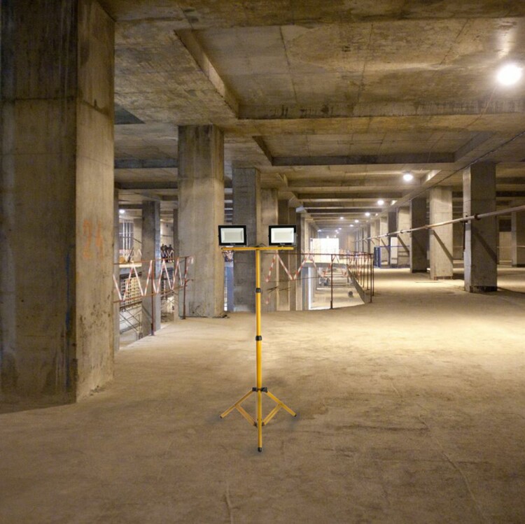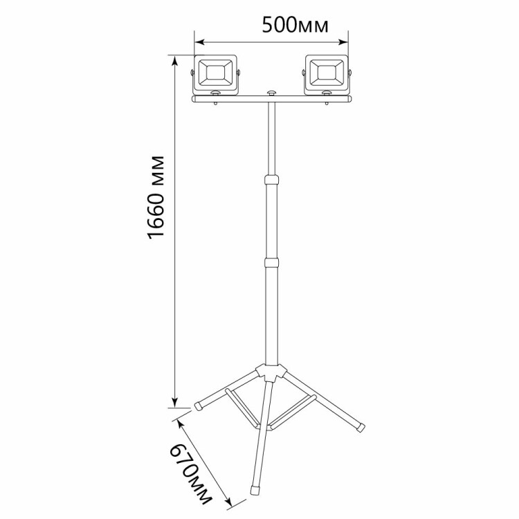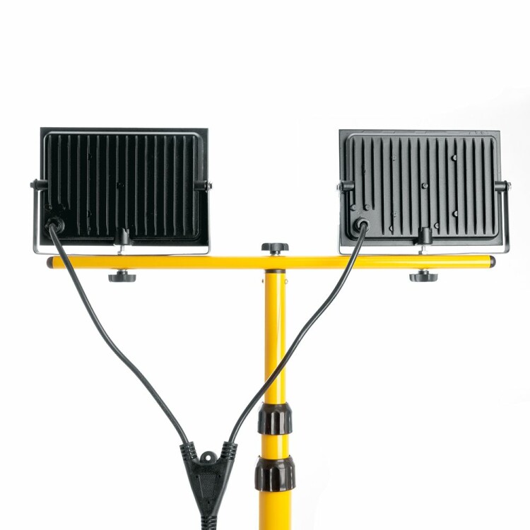 Прожектор светодиодный переносной на штативе, (ДО) FERON LL-502, 2*30W, 6400К (холодный белый), 230V/50Гц, 5400Lm, IP65, угол рассеивания 120°,*SMD2835, раб.t -40°C - +45°C, цвет черный-желтый, корпус алюминий литой под давлением + стекло, 670*500*1660 (штатив+ голова) мм