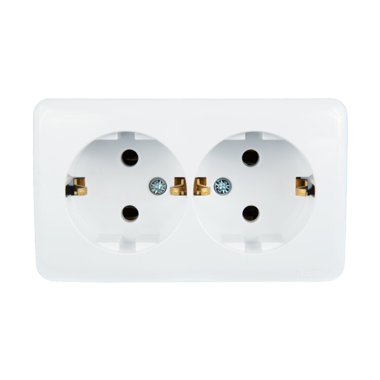 Lezard VIOLA Розетка двойная с/з закрытый корпус керамика белый (12шт/144шт)