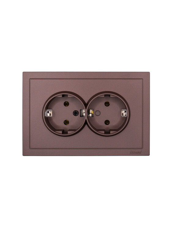 ZIMA Розетка 2-ая с/з ПБТ шоколад безвинтовой зажим/клемма (10шт/120шт)