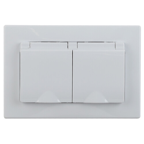 1-210-01 Intro Розетка 2х2P+E Schuko с крышкой штор., 16А-250В, IP20, СУ, IP44, Plano, белый (10/100/1500)
