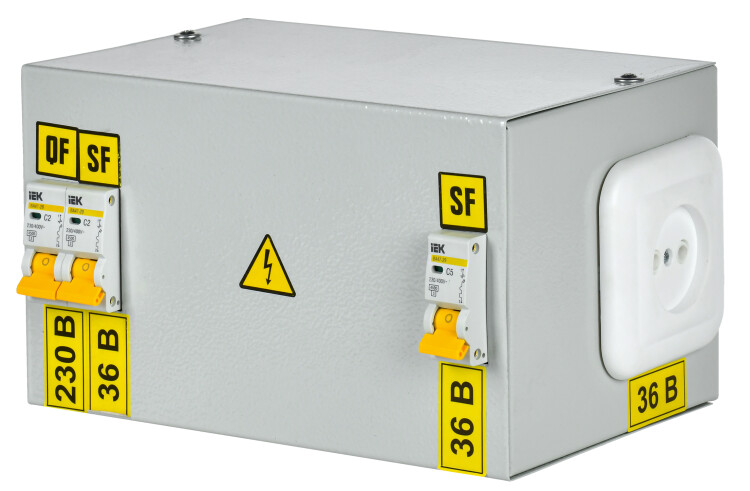 Предназначены для питания местного или ремонтного освещения, а также для подключения переносных светильников и инструмента. Ящики ЯТП имеют разборный металлический корпус, внутри которого установлены: - однофазный понижающий трансформатор ОСО-0,25 мощностью 250 Вт; - автоматические выключатели ВА47-29; - штепсельная розетка.
